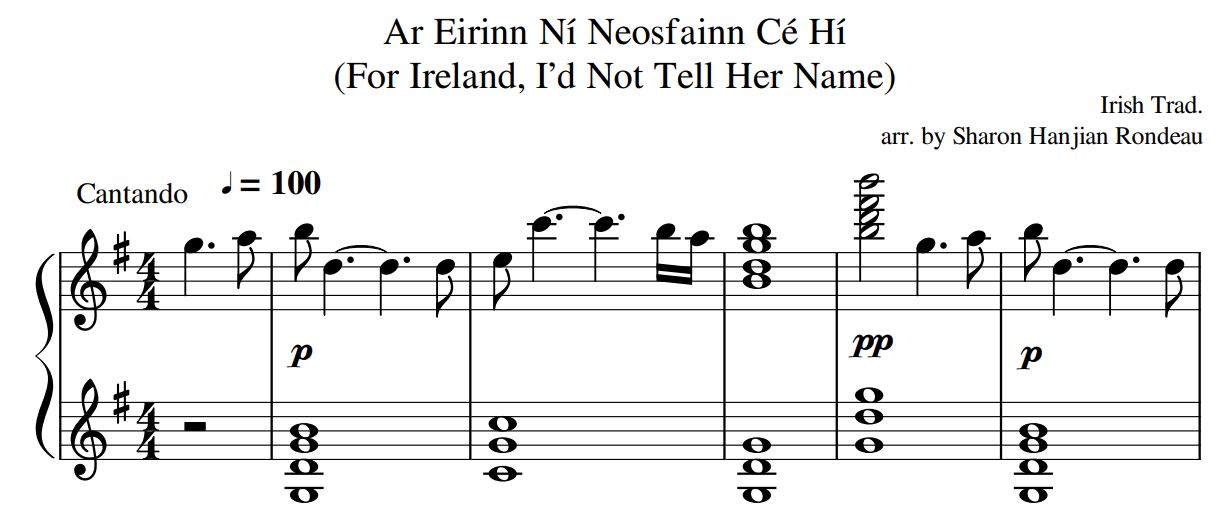 A collection of ten traditional Irish songs arranged for all harps by Sharon Hanjian Rondeau. Easy to learn and play, a pleasure to both perform and hear.